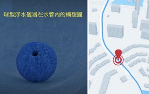 圖片說明:水務署會引入更多先進的水管測漏技術,如圖中內置測漏裝置的球型浮水儀器,可於喉管內對漏水位置進行定位。