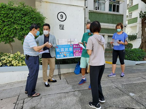 鰂魚涌南豐新邨9座昨日(24日)發現新冠肺炎確診個案,工聯會立法會議員郭偉強与東區區議員王詩展今日(25日)即前往南豐新邨9座向居民派發口罩。郭伟强在社交平台表示,東區區議員王詩展充滿熱忱,與他即時前往南豐新邨9座向居民派發口罩。王詩展亦在社交平台發文,祝願確診街坊早日康復,大廈居民平安無事,社區早日清零。(記者 唐信恒)