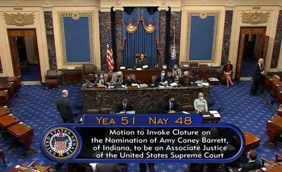 儘管面臨民主黨參議院的集體反對,但共和黨人佔多數的參議院最終以51-48票通過對巴雷特的關鍵程序性投票。美國總統特朗普一直要求參院在大選前通過巴雷特的提名,參院多數黨領袖麥康奈爾支持特朗普的主張,計劃下周一表決。