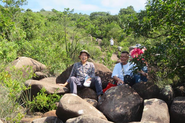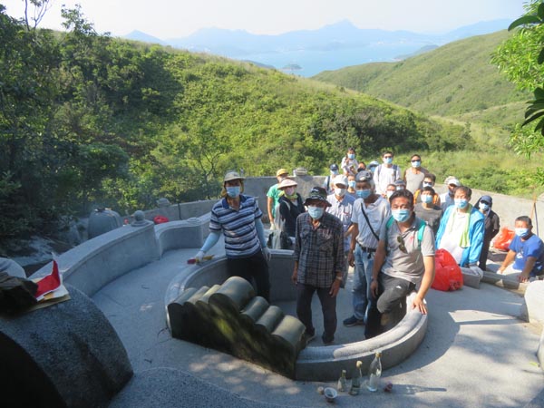 到下午1時,20多名五福堂子孫(3歲至82歲)分別驅車到龍蝦灣路,停在大坑口附近一處山徑入口。這條山徑可通到坐落大山(土名)的十二世劉其質及其夫人曾氏的墓地,但沿途崎嶇不平,有很多大小石頭,逾半路段更要走在大石澗,有些石頭有半個成人身高,要手腳並用攀上。當走至高處,可眺望相思灣一帶,風光優美。大家走走歇歇,差不多用了1小時才到墓地。部分人即第五房振兆後人先轉到另一山頭,拜祭振兆夫人鄭氏。