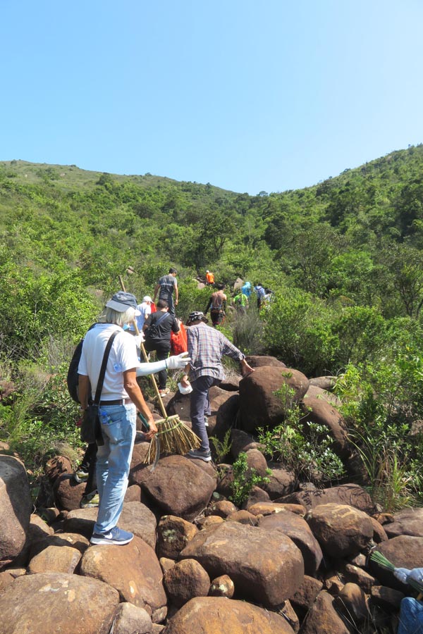 子孫們向大山進發,有的拿祭品,有的拿掃把準備清掃墓地。