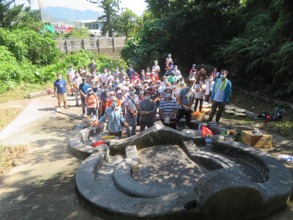 在回程期間,大家在一處較多平坦石頭的水澗分享祭品,其樂融融,所有垃圾放在大袋內帶走,以免影響祖先安息之地。(記者 鄭玉君)
