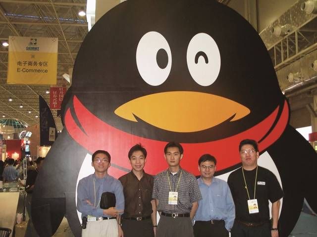 2000年10月的中國國際高新技術成果交易會上,戴着紅色圍巾的胖圓企鵝形象已與日後無異。