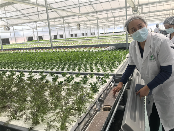「我們於今年四月十五號竣工,正式投產。八月份拿到供港澳資質,在十月份和香港一家公司簽署供銷合同,每月供應量4噸左右。」華瑞綠源植物工廠負責人代小姐接受本報記者採訪時透露。植物工廠是不易受季節及天氣影響,不擇地區和土地條件,人工光型和太陽光兩者相結合,引進日本技術實現高效率的全年栽培,生產時間短,產量高,同等面積產量是普通種植的20倍,一般無土栽培的5倍,有效提高蔬菜的生產效率,無農藥、節水、節能型生產大大降低了環境負荷,每顆成菜只需 0.5升的水。