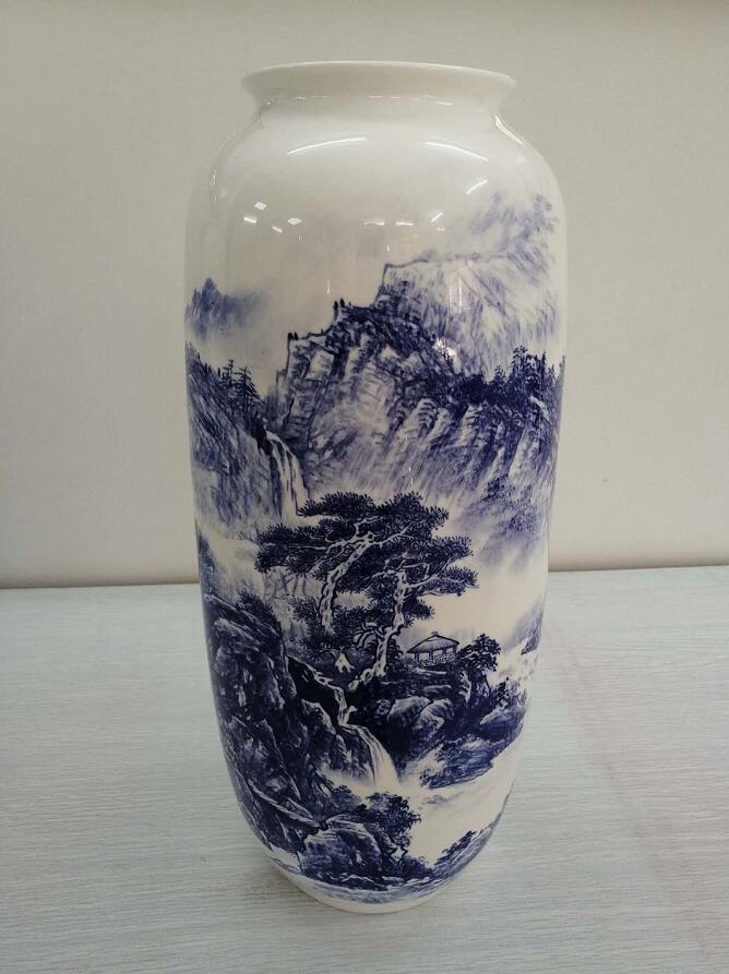 金獎作品:手繪青花骨質瓷高身瓶《高士圖》 黃建宏
