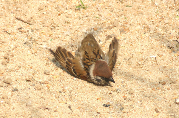 麻雀沖沙浴驅走寄生蟲。王學思提供圖片
