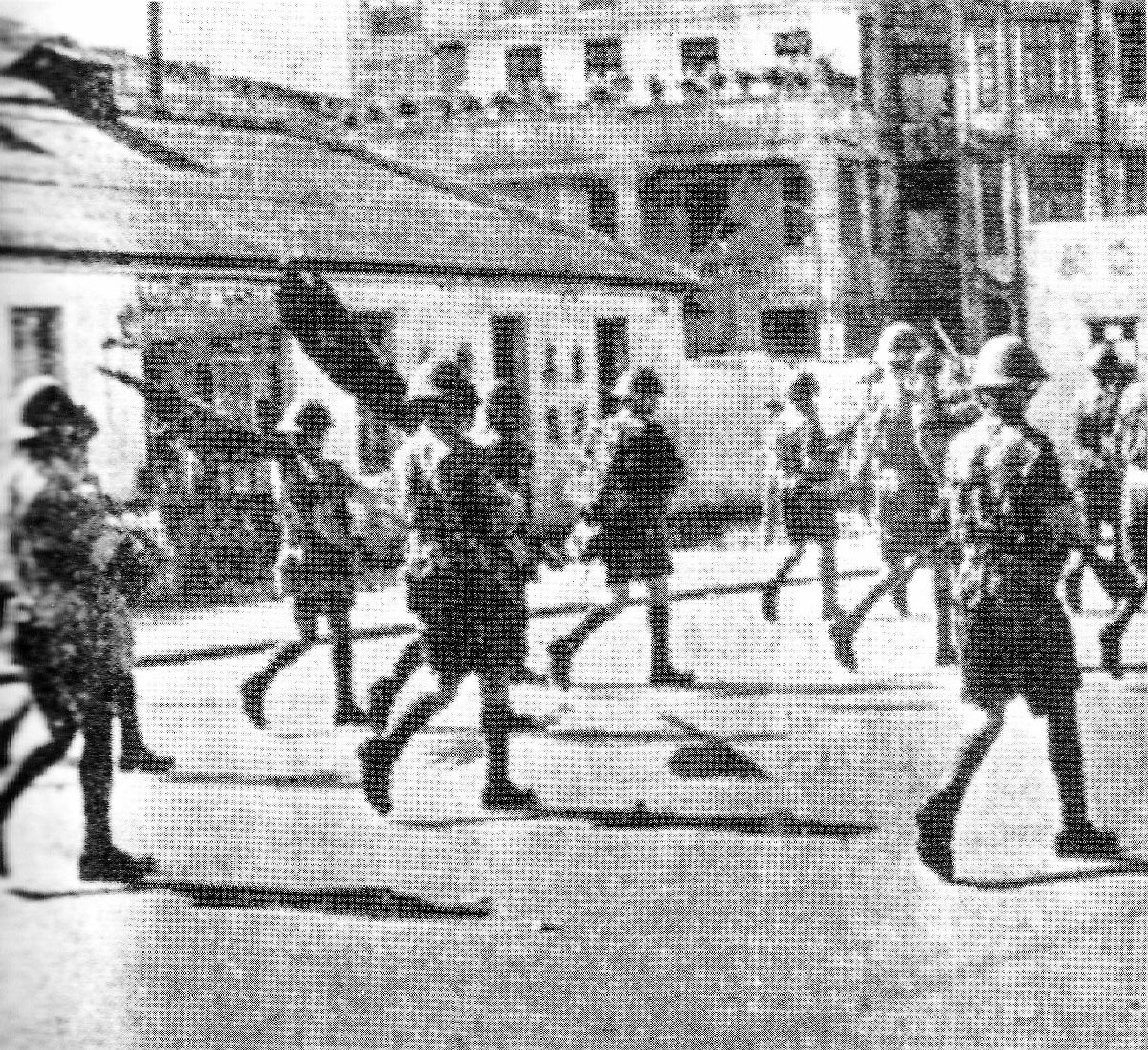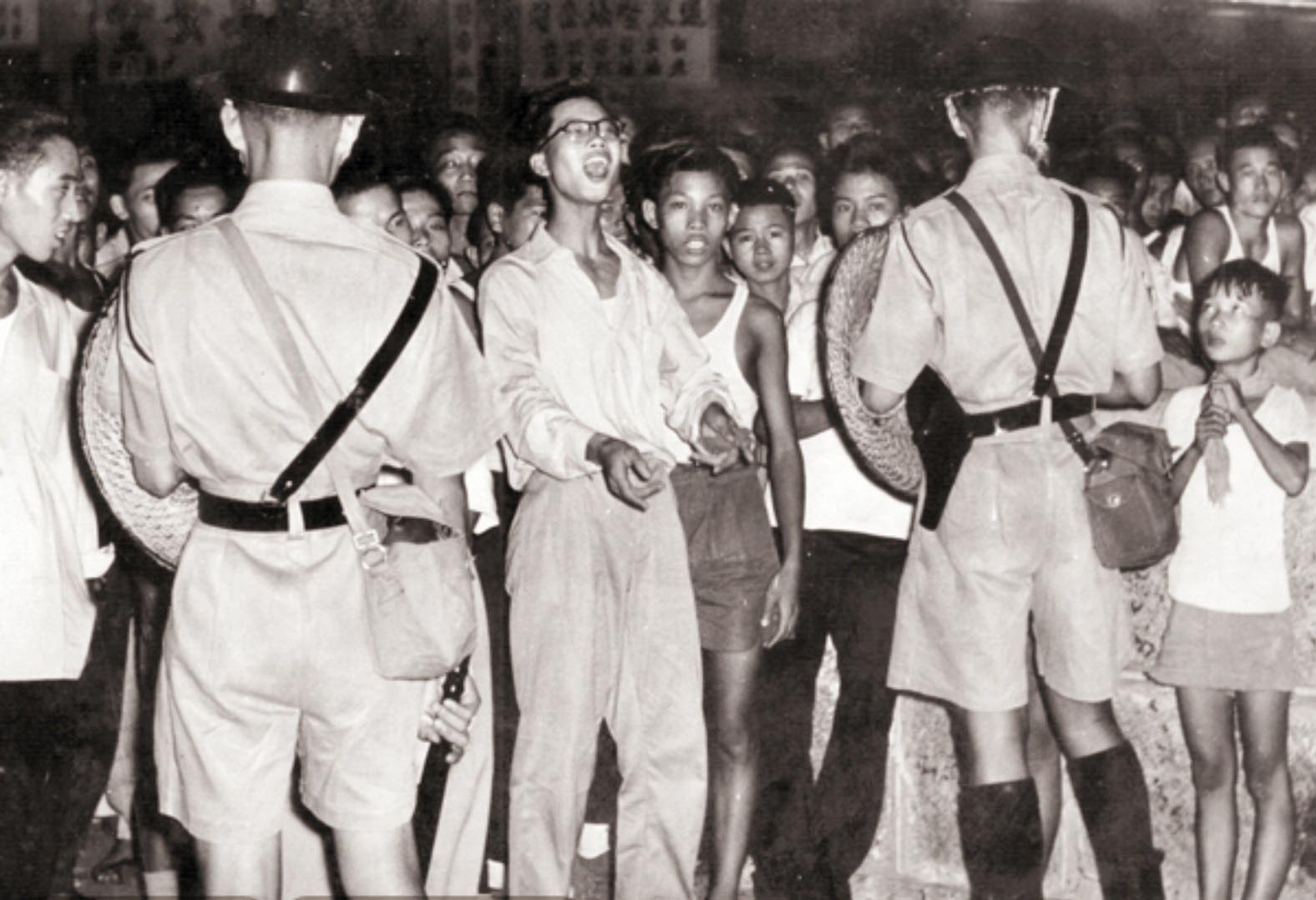 1956年 「雙十暴動」 時的防暴差人分隔人群。