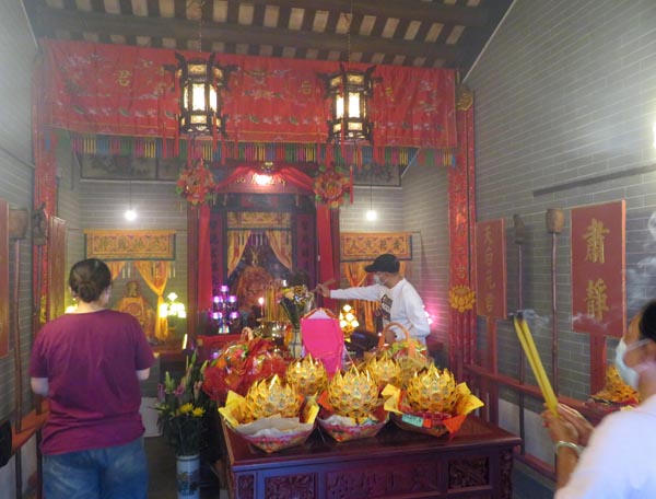 六年前維修開始前,天后娘娘及其他神祇如金花夫人、土地龍神、門官等眾神牌,以及一些舊神像,被請至天后宮旁的臨時神棚,受善信供奉。經歷六年香火洗禮,神棚一片熏黑,連天后娘娘的繡帳亦幾不可辨,將眾神盡快復歸原位是村民、善信的心願。