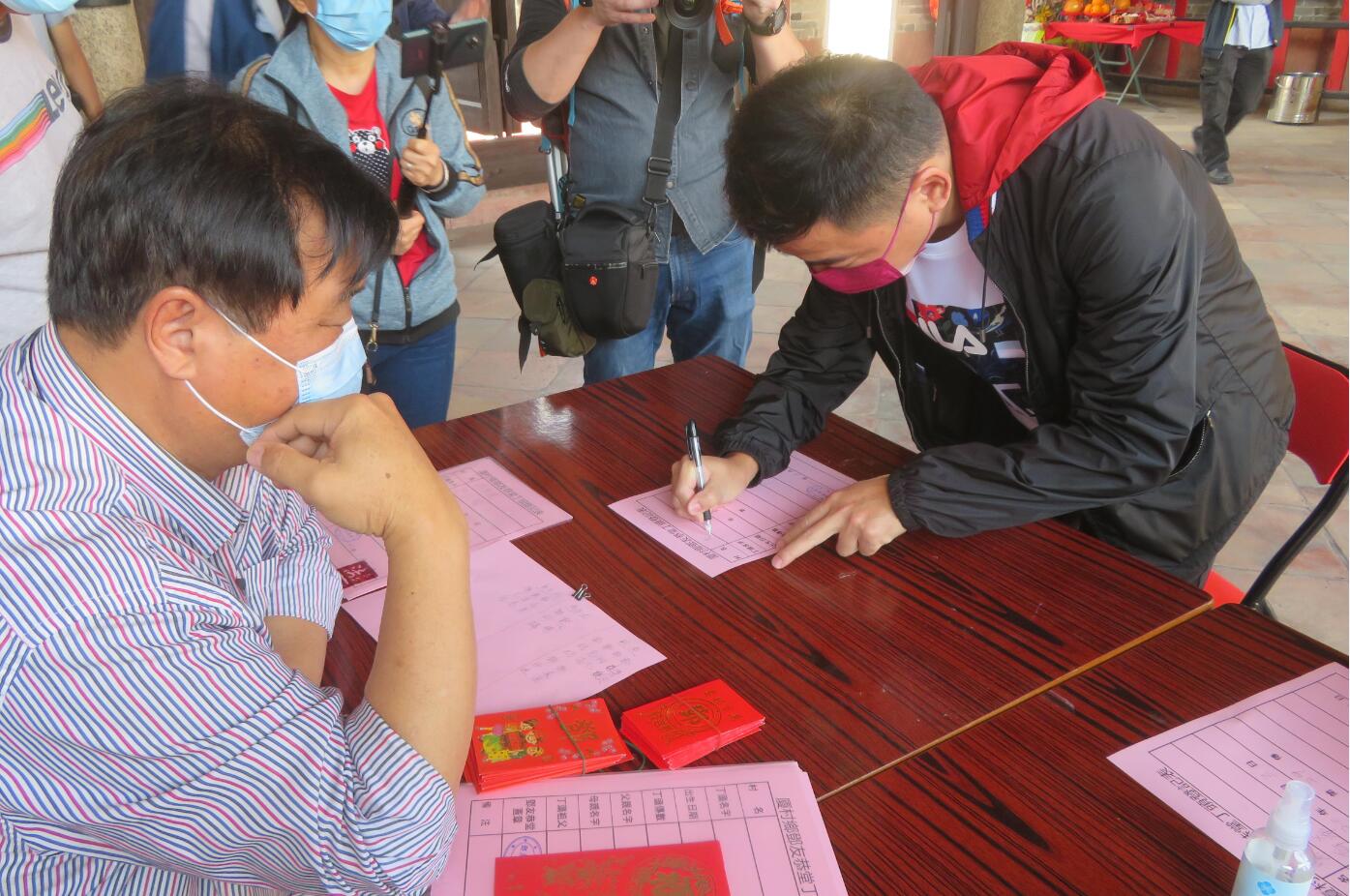 據工作人員說,今年點燈新丁13人,為近年最少,去年有30多人,在前些年,有40多人。原因不得而知,由於今年新丁少,丁頭家人所付燈錢較以往大增,燈錢主要是用於購買燒豬、花燈等,每丁須付一千四百多元,較近兩年的五六百元大增。不過,其中亦有佳話。新圍兩名新丁的父親為兄弟,大哥的兒子在去年9月出生,弟弟的兒子在6月出生。兄弟倆一同參與點燈,默契十足。46歲的大哥已有兩子一女,這次已是第三次點燈。他說,大兒子26歲,當年是鄉中第一個三十傳點燈,由此反映新圍人丁十分興旺。(記者 鄭玉君)