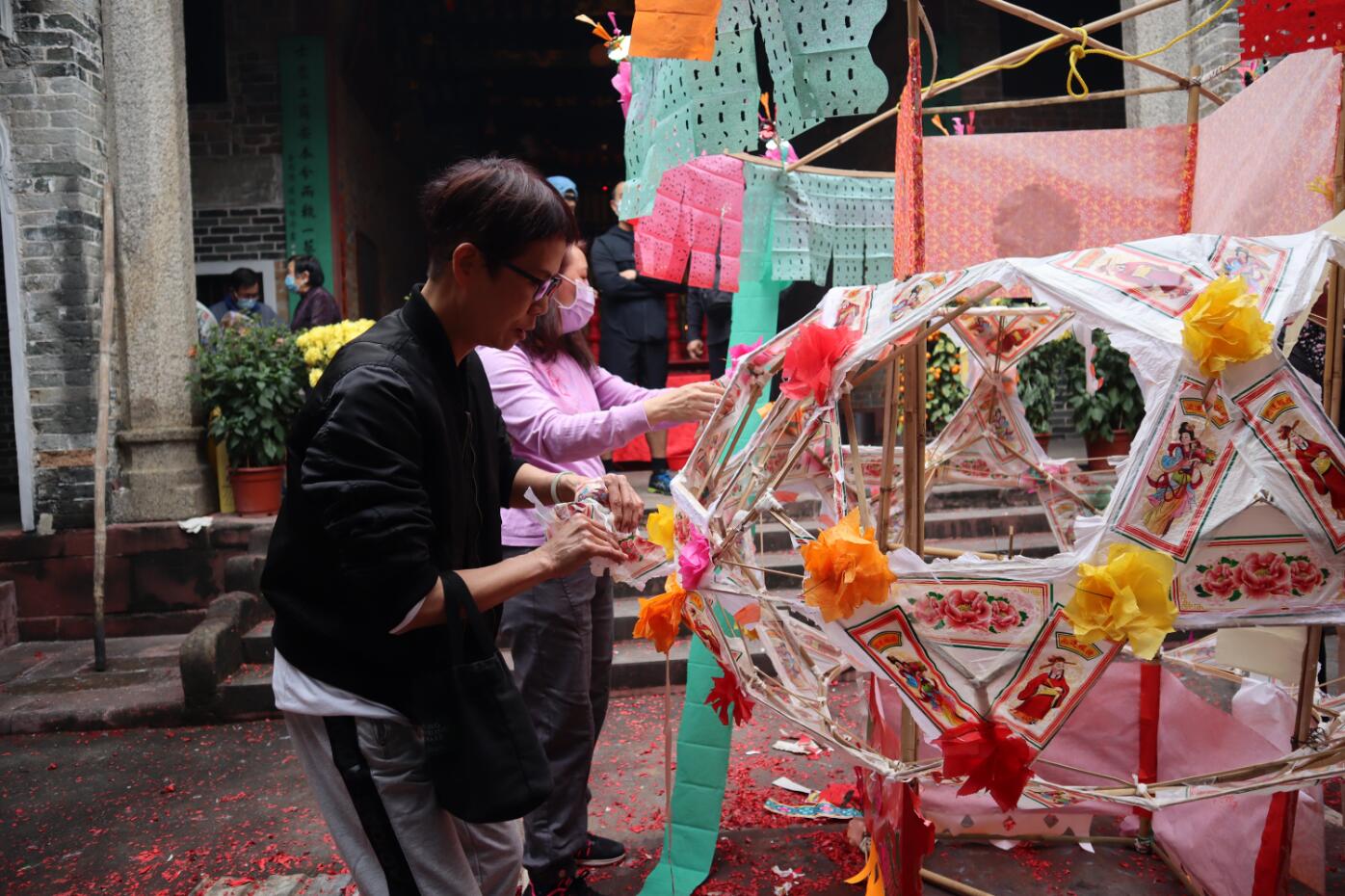 「無論世界如何變化,我們的傳統不會停」,新界一些村落在疫情影響下,依舊在元宵節前後舉行點燈儀式,向祖先稟告族中有新成員誕生。燈,諧音為丁,「點燈」有添丁和繼後的意思,記者在正月十二及十五元宵節,來到鄧族聚居地元朗廈村鄉的鄧氏宗祠,看看鄉中的集體點燈儀式,今年登記新生男丁共有13名,其中3名可掛燈的新丁全來自新生村,當燈在祠堂掛起時,一室華彩,祈願佳兆降臨。