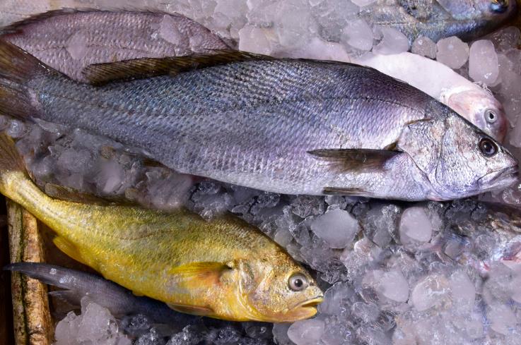 大澳魚檔擺賣養殖的白花魚及黃花魚。