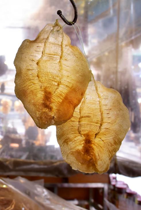 長條形的乾門鱔魚鰾也可作鱔肚。