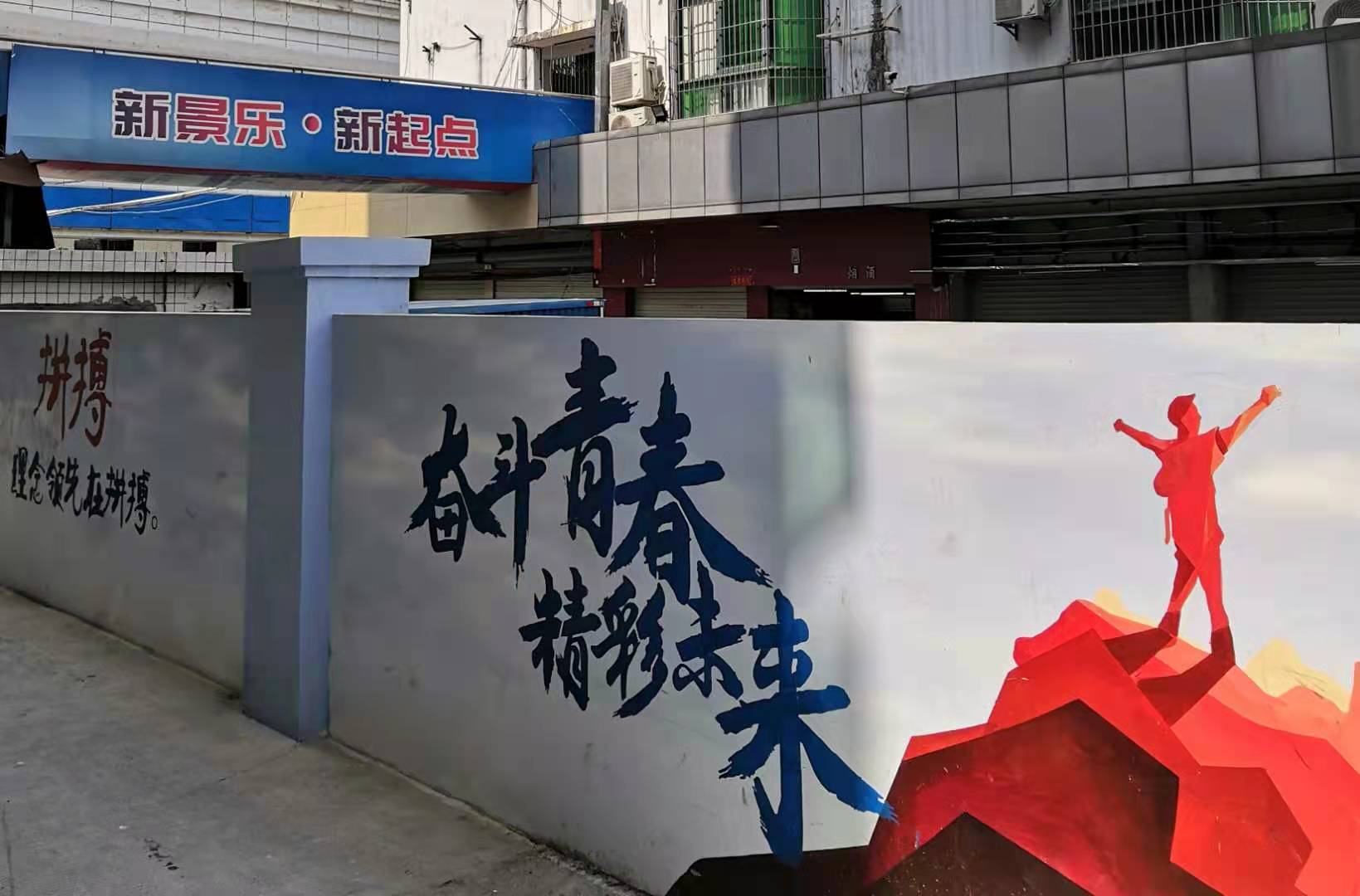 在景樂新村中行走可以發現,這裏正致力培育一種「奮鬥文化」,努力從根子上消除「三和大神」的不良影響。在景樂北片區圍牆上,書寫着「奮鬥青春、 精彩未來」「你不努力,誰也給不了你想要的生活」等勵志語句。在位於南片區街邊公園內,「拼」成為文化牆上的主題詞——「放肆拼搏,追逐夢想」「沒有拼命哪能博得喝采」的語句格外醒目。