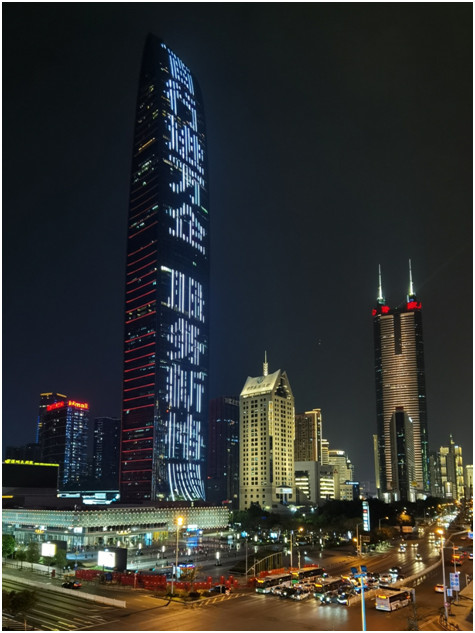 京基一百大廈、平安國際金融中心點亮「百行進萬企 服務新格局」標語