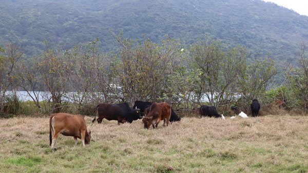 企嶺下海旁的田野上牛隻安樂地吃草。