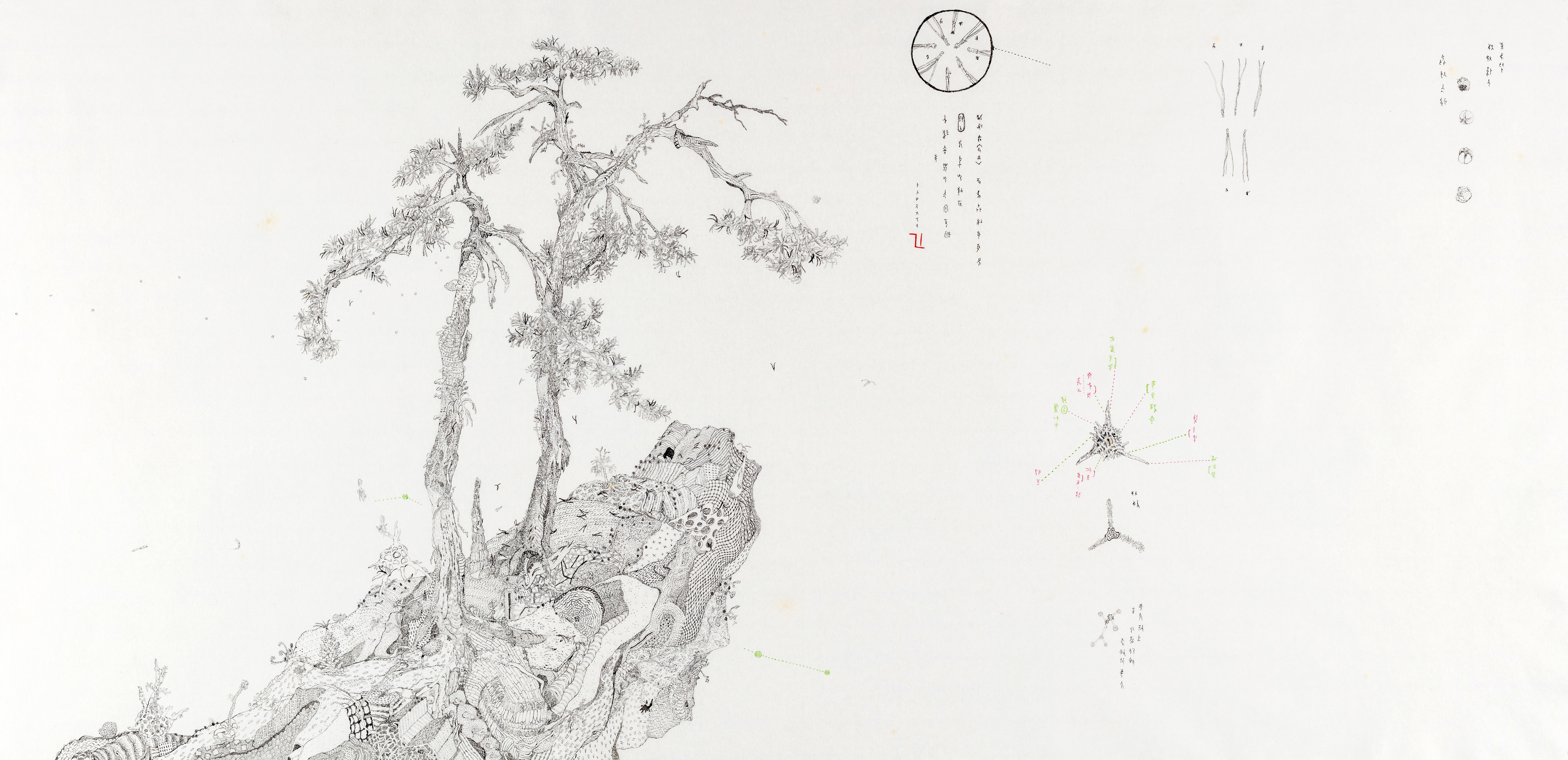 松樹四季長青,在畫作中代表堅強不屈、不怕困難的精神,已故香港藝術家林穴(1968-2020)也愛描繪松樹,他生前一直遊走於山水之間,研究植物和微生物的形態,對景觀與自然有精細的刻劃。他喜歡純粹的事物,以纖幼竹枝或樹枝代替毛筆作畫。林穴曾解釋他畫中的符號與圖騰,創作靈感與部分技法均來自大自然、夢以及閱讀,他創造出一套符號文字系統,運用在生活與作品中,這是他與世界溝通的密碼,也是留給觀者解讀的謎題。香港藝術中心現正舉辦的《林穴回顧展》展出畫家尚未發表及具代表性的畫作,透過松樹系列創作,表達林穴對生命的成長和衰敗的見解。(文:Karena)