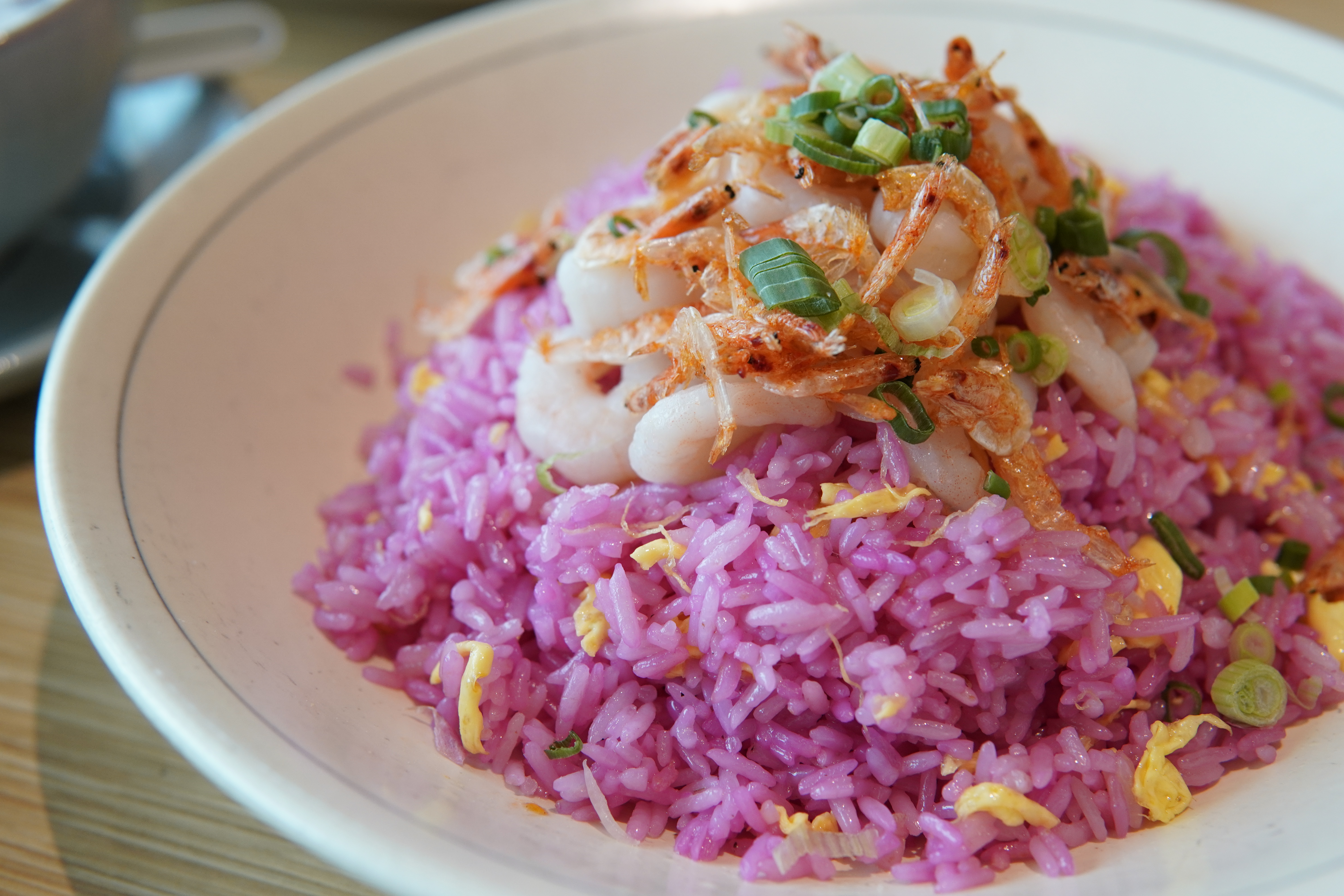 粉紅炒飯配上蝦仁及櫻花蝦,是視覺、味覺的雙重享受。