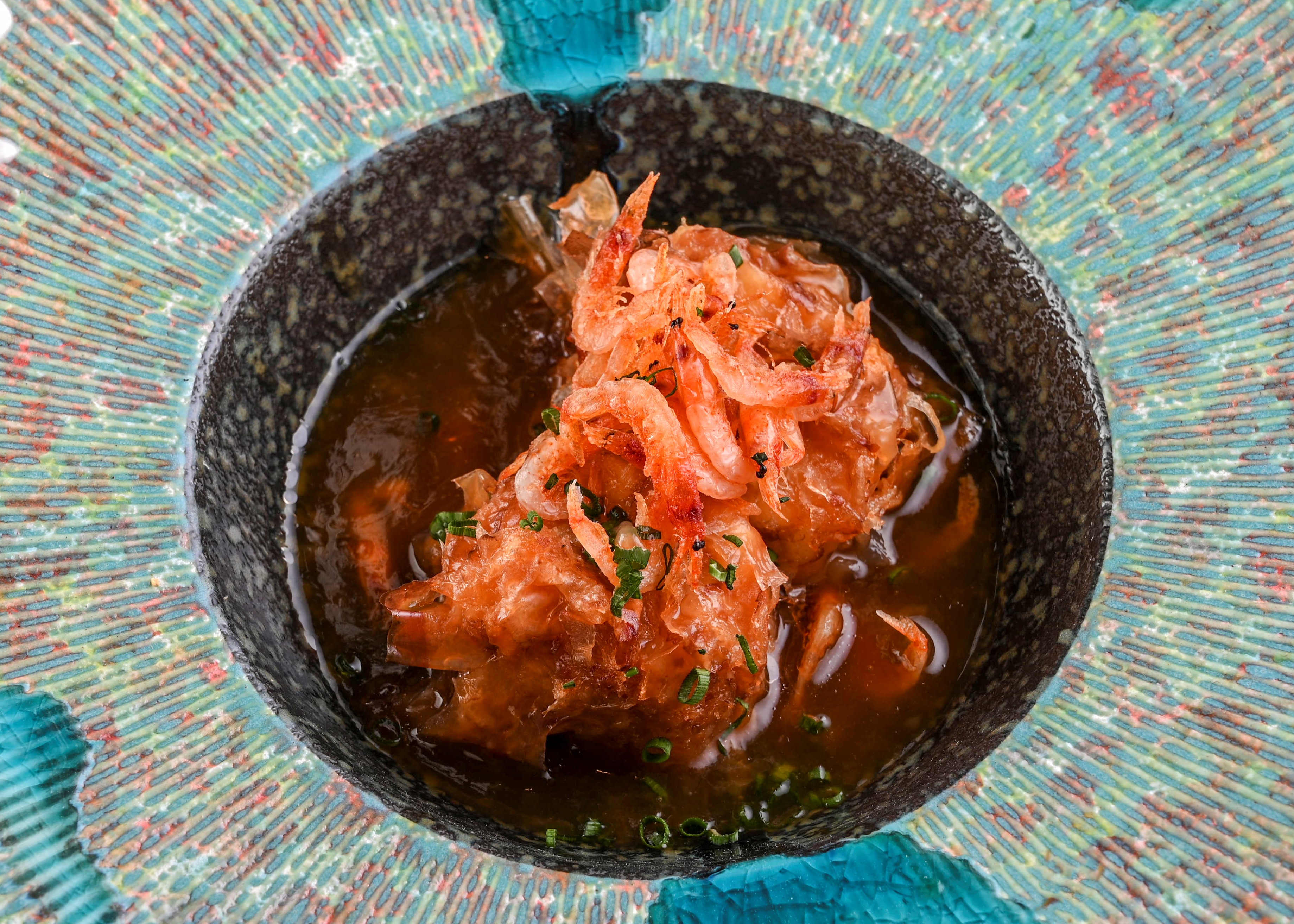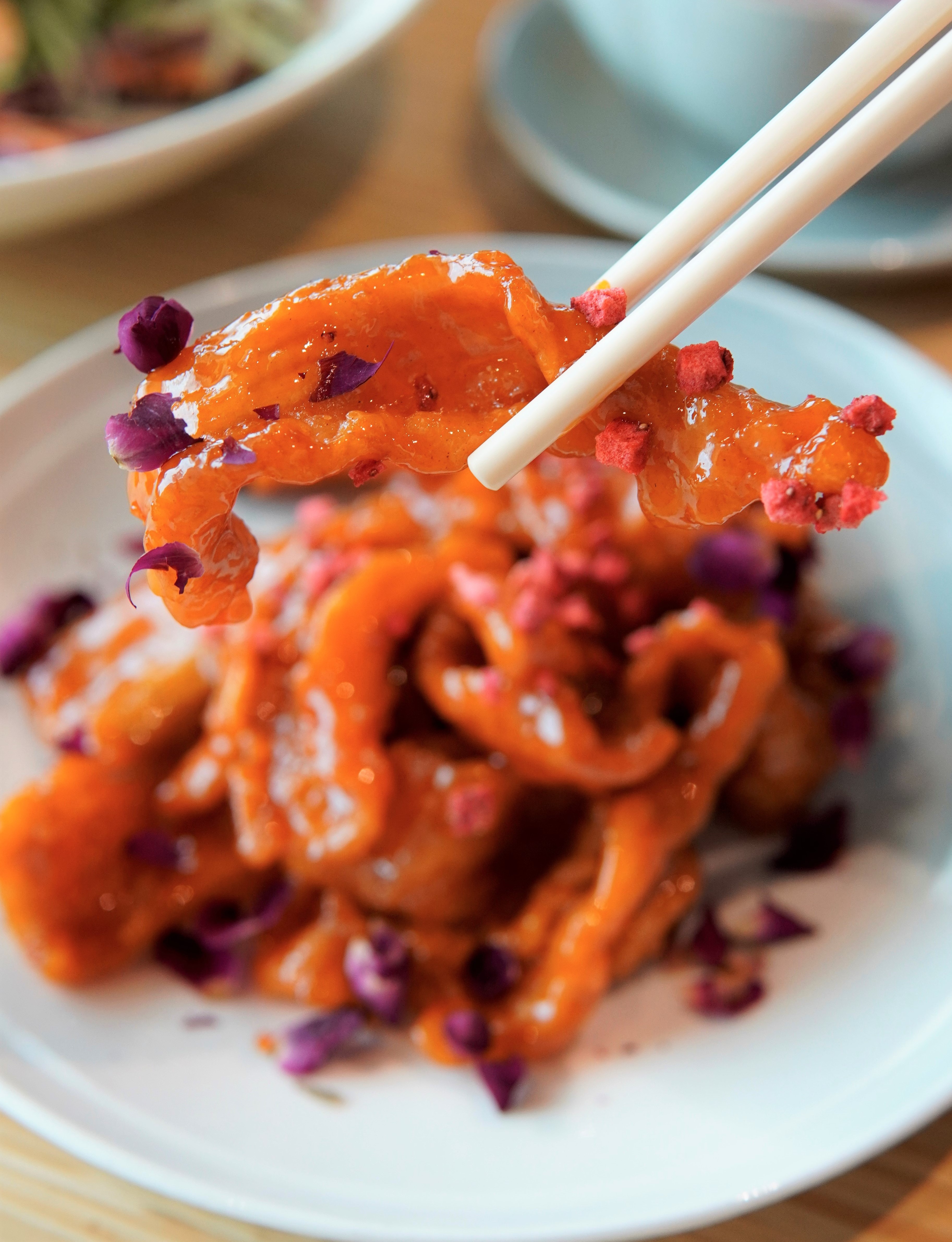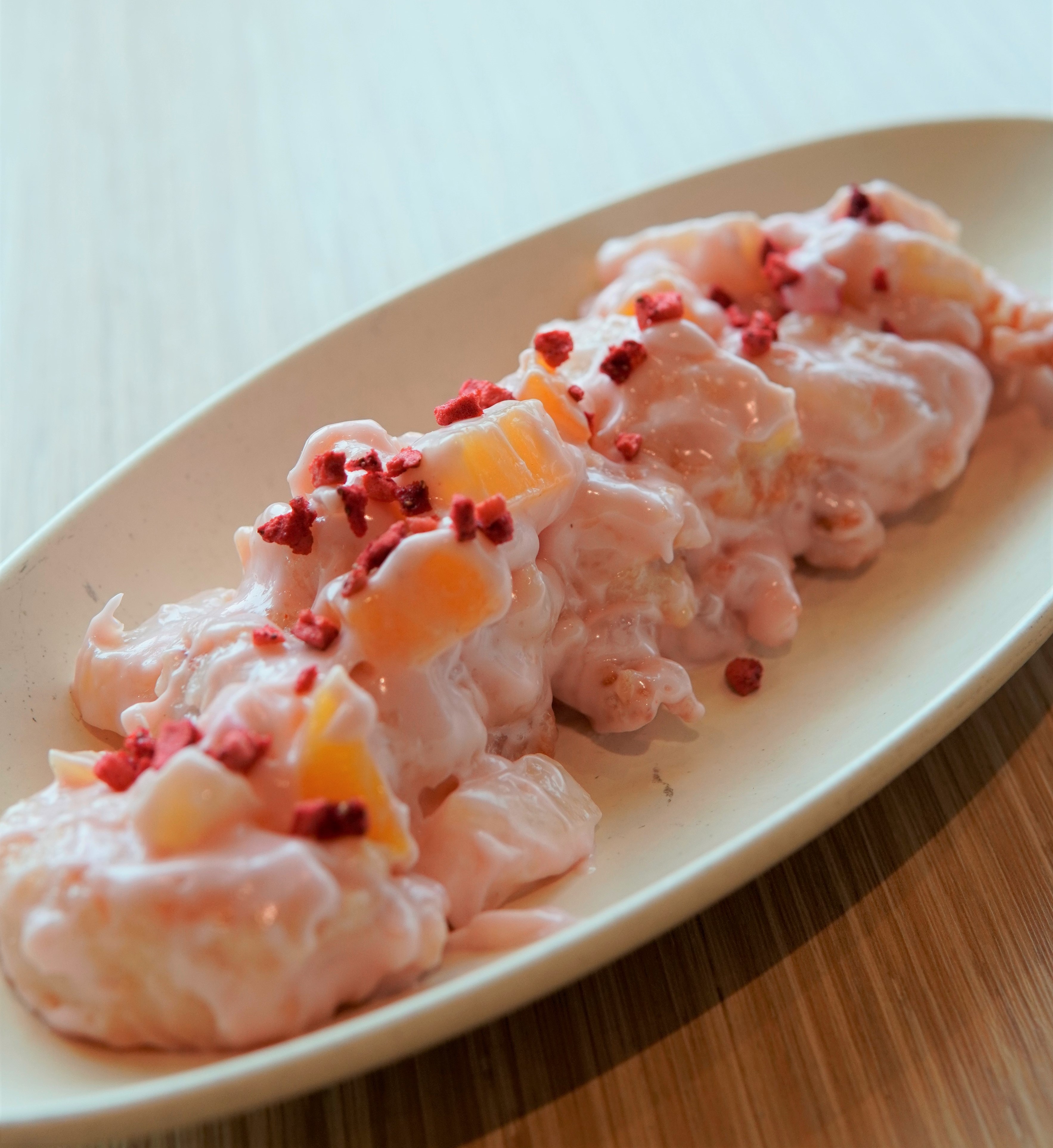 櫻花蝦是一種體型細小的海蝦,呈透明粉紅色,發亮的身體像櫻花瓣小巧玲瓏,因此有櫻花蝦之稱。翡翠拉麵小籠包推出的母親節套餐中包括「漫天櫻花蝦炒飯」,櫻花蝦的鹹香配上爽彈的蝦仁,炒飯以紅肉火龍果汁著色,披上粉紅的外衣,炒至粒粒分明。餐廳供應至 6 月 30 日 的「賞花嚐花饌系列」還有其他值得一試的粉紅美饌,如「玫莓脆脆豬頸肉」,少見地使用豬頸肉為咕嚕肉,以草莓、玫瑰糖醋汁配上香脆的豬頸肉,味道酸甜有層次。另一道「夢幻雲朵蝦球」以爽口的蝦球配上櫻花蛋黃醬,外形恍如朵朵彩雲,是打卡必食之選。