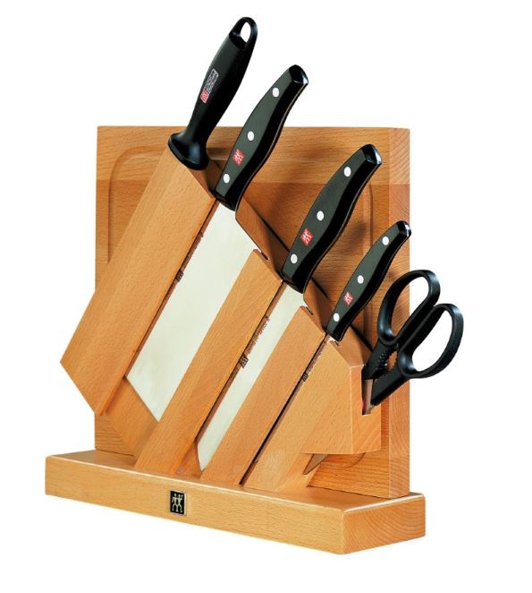 德國孖人牌的刀具,向來以鋒利、耐用見稱。這套6件刀具套裝TWIN Pollux,包括有7吋中式廚刀、7吋日式廚刀、3吋蔬果刀、8吋廚剪、磨刀棒及木砧板,並連刀座同售。品牌以特殊配方的不鏽鋼材製造刀具,刀鋒持久鋒利,且具高度抗腐食性。套裝原價$3499,現以$1288發售。