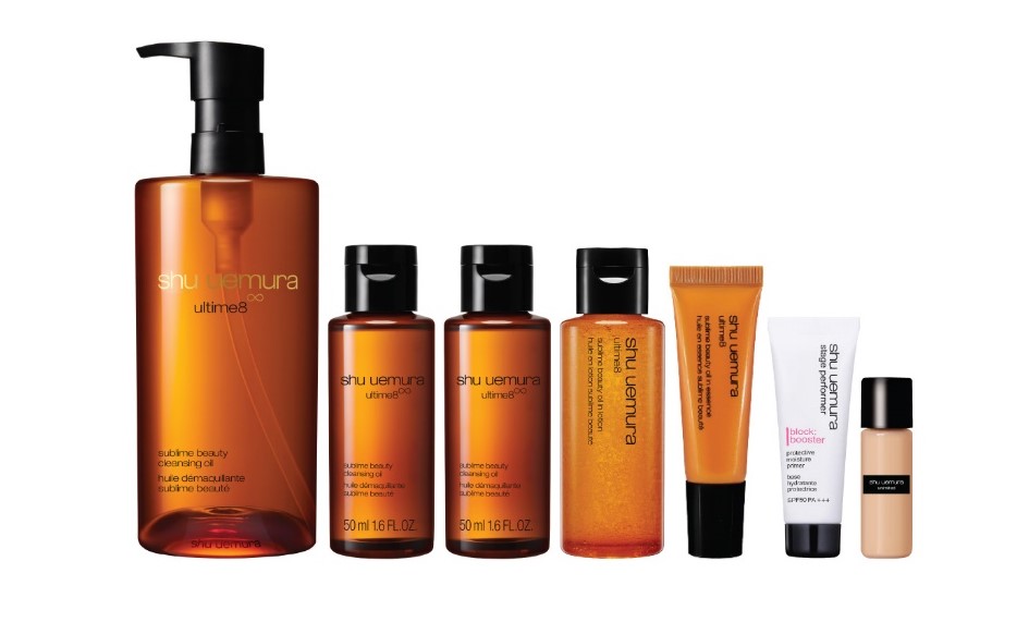 ultime8 養膚潔顏油 450ml 套裝,港幣875元(原價港幣1630元)。包括ultime8 養膚潔顏油 450ml、養膚潔顏油50ml x 2件、水潤隔離防曬底霜 7ml、unlimited 無限輕透持妝粉底液 5ml、ultime8精華水 50ml、ultime8精華 7ml。(尖沙咀店限定)