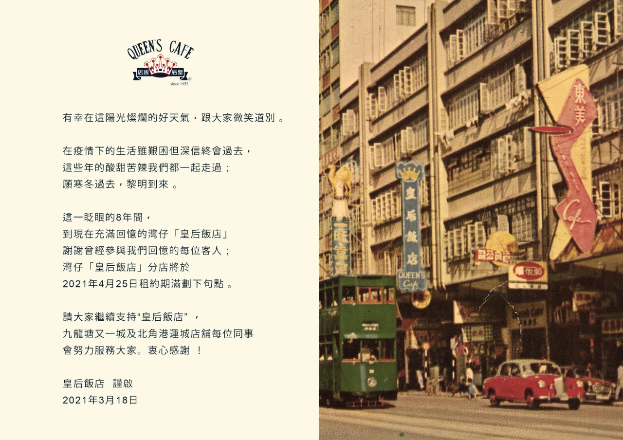 隨着時代發展,「豉油西餐」在香港的數量越來越少,位於灣仔的皇后飯店分店於4月25日結業。