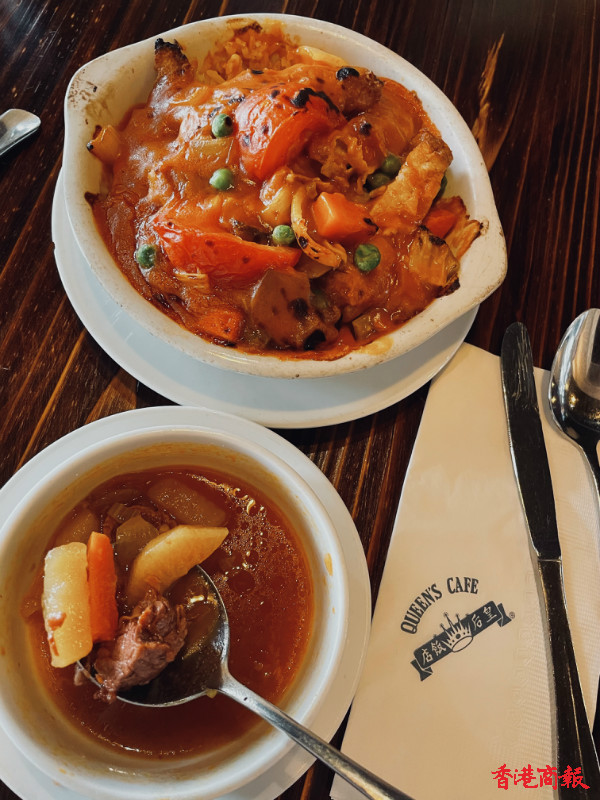 港式西餐,又名「豉油西餐」,在上世紀60年代的香港,只有外國人或上流人士有機會享受西餐,於是,許多餐廳開始選用本地食材和調味料,豉油提味,番茄醬羅宋湯,製作出普通大眾也可享受的西餐。皇后飯店就在這樣的時代背景中產生,因開業於1952年,剛好是英女皇即位之時,老闆隨即取名為皇后飯店。港式西餐承載了老一輩香港人的集體回憶,電影《花樣年華》中的金雀餐廳以及《阿飛正傳》中的皇后飯店,保留了正宗的港味。