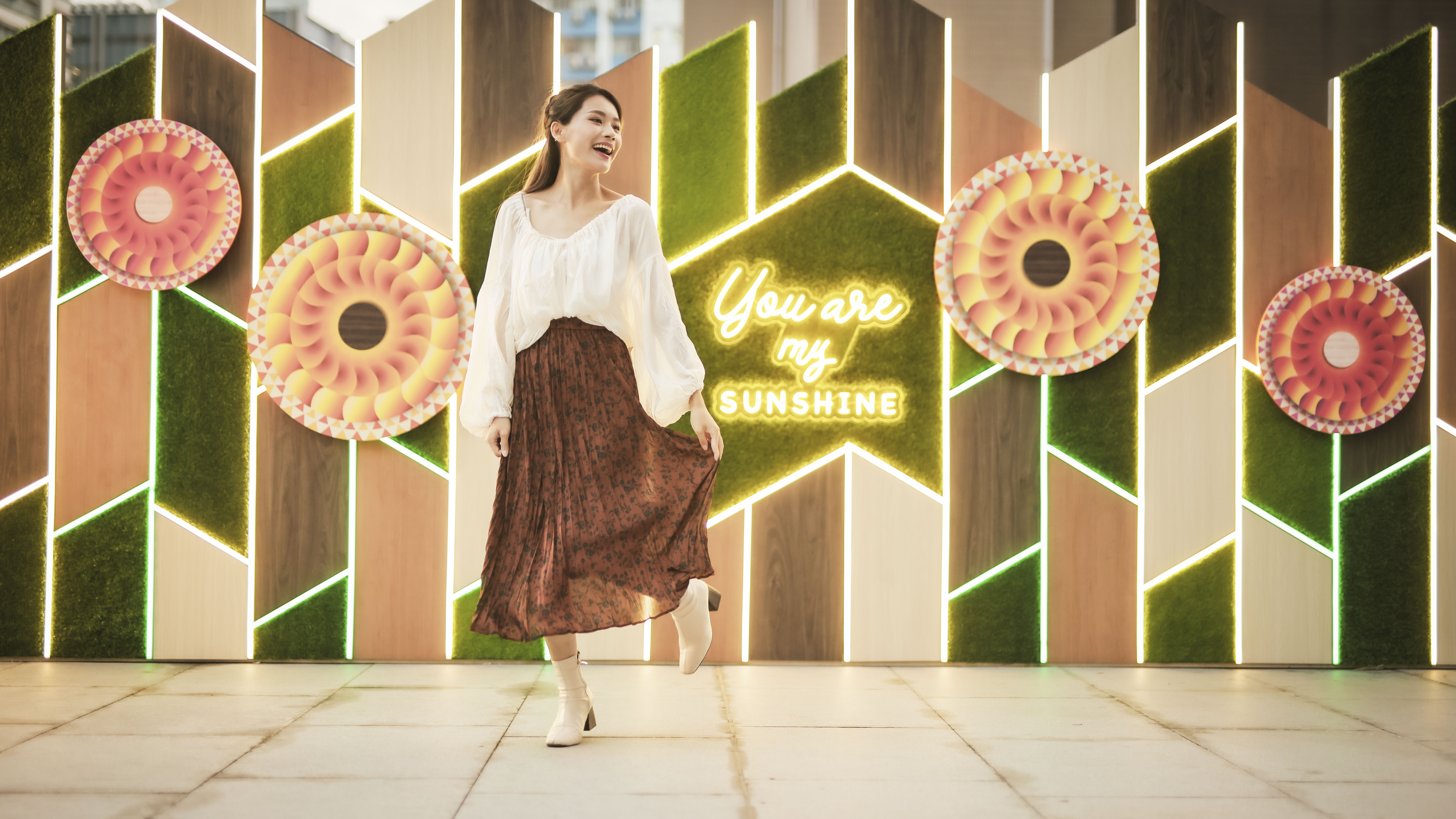 新都會廣場內設置小清新風格的向日葵星光打卡牆,以大地色系為主,配以向日葵作點綴,牆上寫有「live more worry less」的字樣,配上七彩霓虹燈,感恩媽媽的愛及對家庭的付出。新都會廣場亦設有「五色鮮果花束」主題工作坊,以各種顔色繽紛的蔬果為花材,製作一束專屬媽媽的鮮果花束。