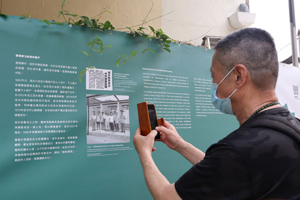 鄭裕光在展覽相片中發現父親原來是深井商會一員,即時翻拍留作紀念。