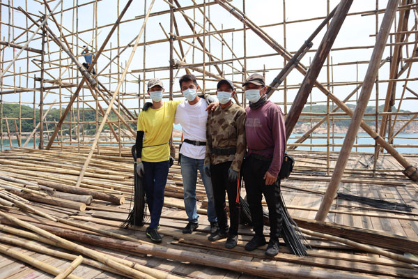 這趟搭戲棚恆常人手六至八人,工序多時要十六七人,安仔、阿青、阿滔、阿賢、阿強、阿輝、細文,差不多由頭帶到尾,在蒲台留下不少汗水。李家俊雖然是判頭,但一樣與搭檔師傅們合作無間,除了工作,也一齊吃飯,亦一同在蒲台島村公所內扎營過夜,他坦言不怕辛苦,最憂心是人手不足,因為懂搭戲棚者已愈來愈少。 (下期待續)