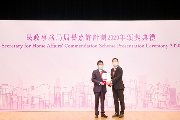 劉達泉獲頒香港2020年「民政事務局局長嘉許計劃」卓越貢獻獎。