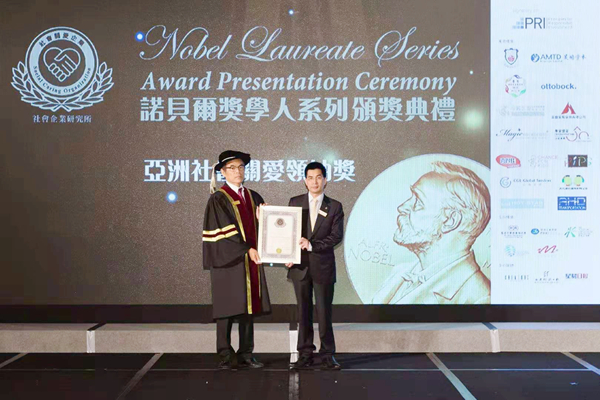 劉達泉獲頒諾貝爾獎學人系列之亞洲社會關愛領袖獎。