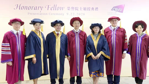 2020年劉達泉(左三)榮獲授予香港城市大學榮譽院士。