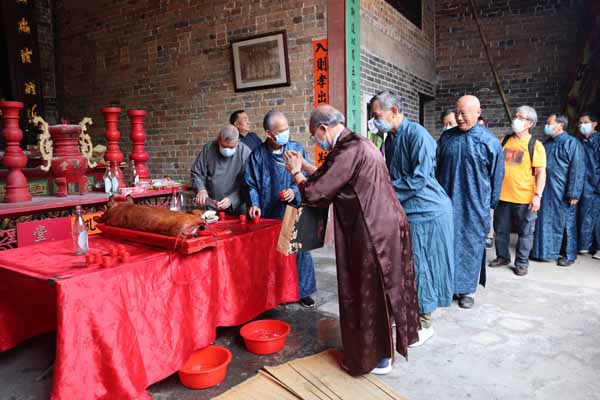 新界一些宗族活動仍可看到一些德高望重的鄉紳父老穿上一襲長衫。圖為廈村鄉今年春祭情況。資料圖片