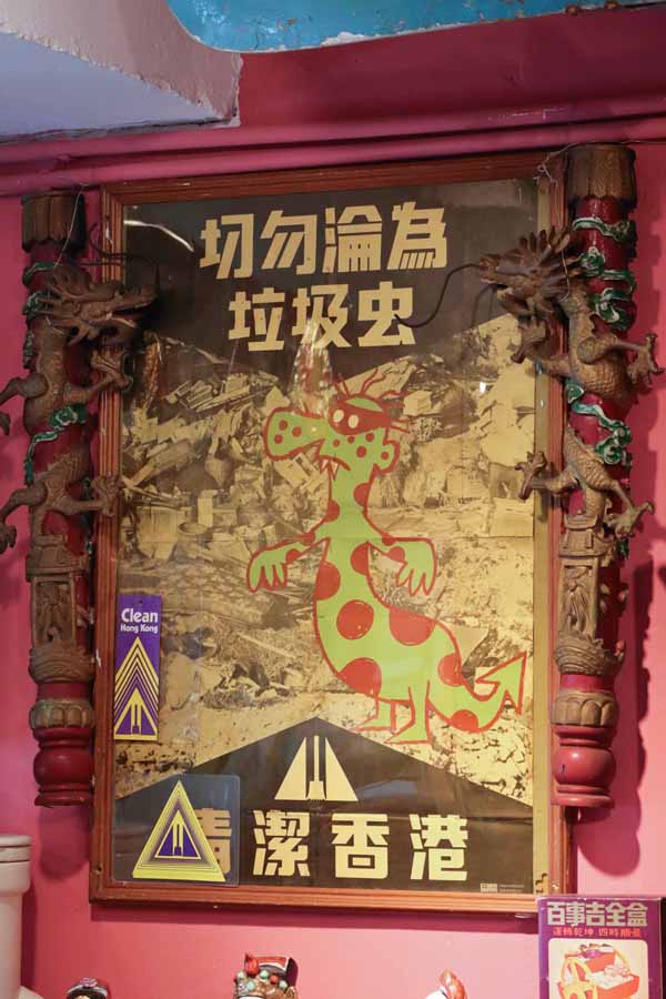 在「大廳」牆上掛了一幅鑲框海報,上款寫「切勿淪為垃圾虫」,下款為「清潔香港」,海報內容是一堆垃圾中的垃圾蟲。村長說這是70年代宣傳清潔香港的原版中文海報,一般而言,紙張是很難保存下來的物品,它能夠生存,原因是淪為包書紙,並且是一分為二包兩本書,但包書人顯然很細心,當包書紙還原為海報時,竟然沒破損,從收藏角度而言非常罕有。