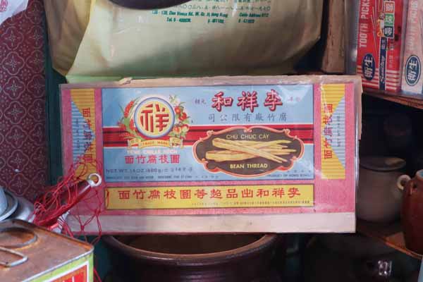 在「廚房」一角,發現了顏色鮮艷的包裝招紙,從其黃、粉、藍等襯色及獨特註冊商標,在屯、元一帶長大的成熟人士,必定會認識這就是李祥和腐竹廠的招紙。村長小時也吃過他們的產品。腐竹生產行業在上世紀六七十年代十分興盛,但到八九十年代由於經濟結構改變,漸漸難以生存而倒閉,如今已全數結業。李祥和腐竹廠的經歷正正反映了這段歷史。