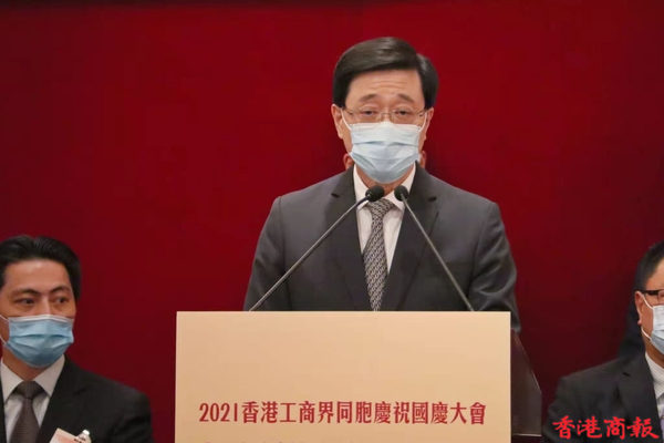 李家超於會上表示,國家發展一日千里,而國家與香港緊密相連,是香港最強大的後盾,亦推出了《香港國安法》、完善選舉制度這套組合拳。他說「十四五」規劃對香港尤其重要,加上粵港澳大灣區,香港要融入國家發展大局。