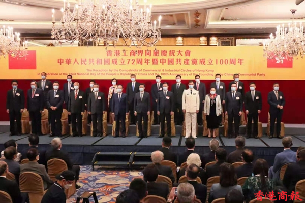 香港工商界同胞慶祝大會今日(27日)舉行,慶祝中華人民共和國成立72周年暨中國共產黨成立100周年,多位嘉賓出席,包括署理行政長官李家超、中聯辦副主任譚鐵牛、律政司司長鄭若驊等人。