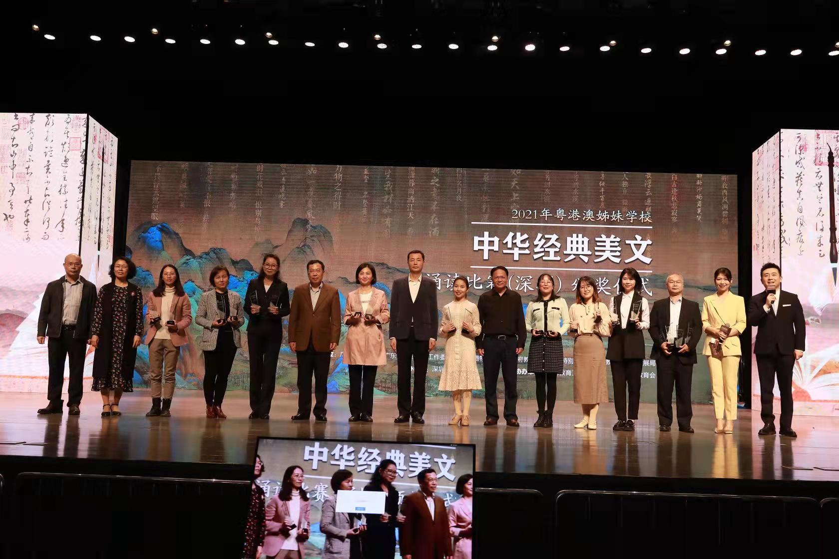 2021年12月16日下午,「2021年粵港澳姊妹學校簽約儀式暨粵港澳姊妹學校經典美文誦讀比賽(深圳)頒獎典禮」在深圳市中小學藝術教育基地舉行。粵港澳三地領導和校長們、同學們齊聚深圳市中小學藝術教育基地並連線港澳、廣州、東莞,見證粵港澳姊妹學校締結成對,同根同心;深港澳姊妹學校學生登上多彩舞台,誦讀千古美文,傳承華夏文明。