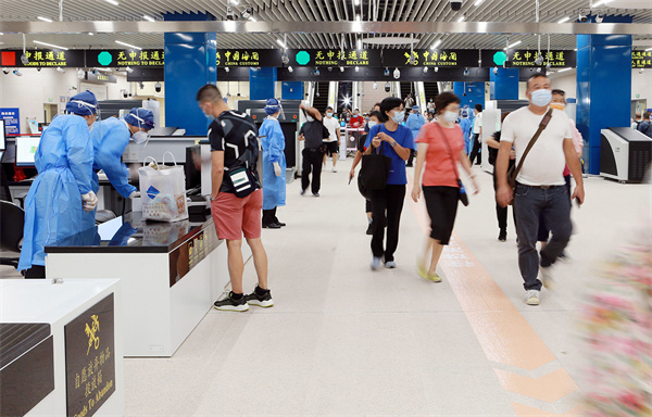 頂圖:拱北口岸旅檢現場。(俞波攝)