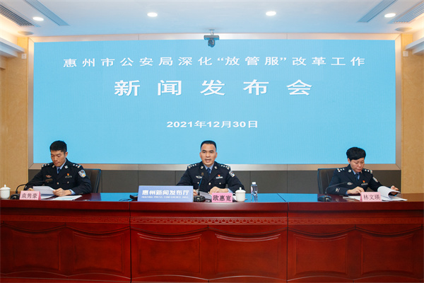 據介紹,2021年以來,惠州市警方把公安「放管服」改革作為全面深化公安改革、服務保障惠州高質量發展的強大引擎和重要突破口,主動聚焦社會關切、順應群眾期盼,大力推進簡政放權、釐清權責、加強監管、優化服務,全力解決群眾關心關注的「痛點」「堵點」和「難點」問題,不斷提升公安機關服務水平。