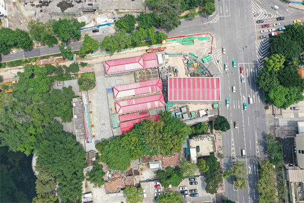 由於車站地處中心城區,地面交通繁忙,地下管線繁雜,可用於施工的場地非常有限,不具備採用明挖施工的條件。為了最大限度地減少施工對市民的影響,廣州地鐵和施工單位中鐵二局的建設者們,深入研究設計方案可實施性,最終確定引入洞樁法施工。據了解,這是廣州地鐵首個採用洞樁法施工的車站,在廣州地區尚無可以借鑑的相關施工經驗。