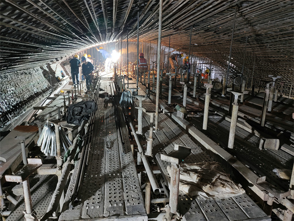 中鐵二局廣州地鐵十一號線二分部流花路站項目經理楊海告訴記者,與目前常規明挖車站施工工法不同,洞樁法施工在施工場地受限、交通疏解困難等方面,有著顯著優勢。同時,洞樁法施工的車站結構受力體系轉換和工序較為複雜,施工縫數量較多。為解決因施工縫澆築質量引發的防水問題,地鐵建設者們通過優化側牆施工順序,有效提高了施工質量。