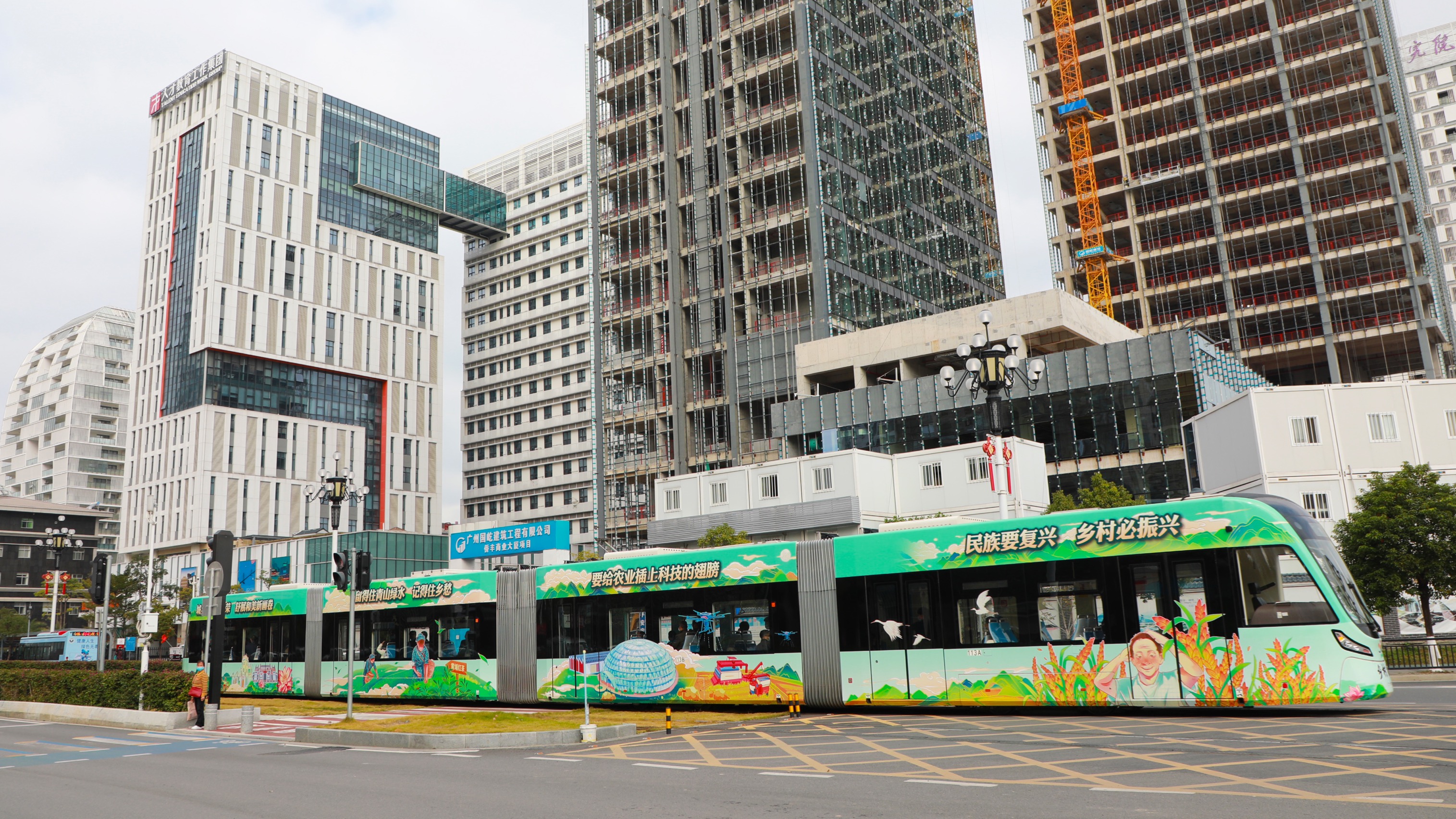 12月31日,廣州市黃埔區「鄉村振興號」有軌電車主題專列首發儀式舉行。該輛列車由黃埔區委鄉村振興辦、黃埔區鄉村振興局攜手廣州開發區交通投資集團打造。主題列車以綠色、黃色為主調,以「一車廂一主題」為設計思路,分別打造了「民族要復興 鄉村必振興」「給農業插上科技的翅膀」「留得住青山綠水 記得住鄉愁」「城共融亦共榮 舒展和美新畫卷」四大主題車廂。