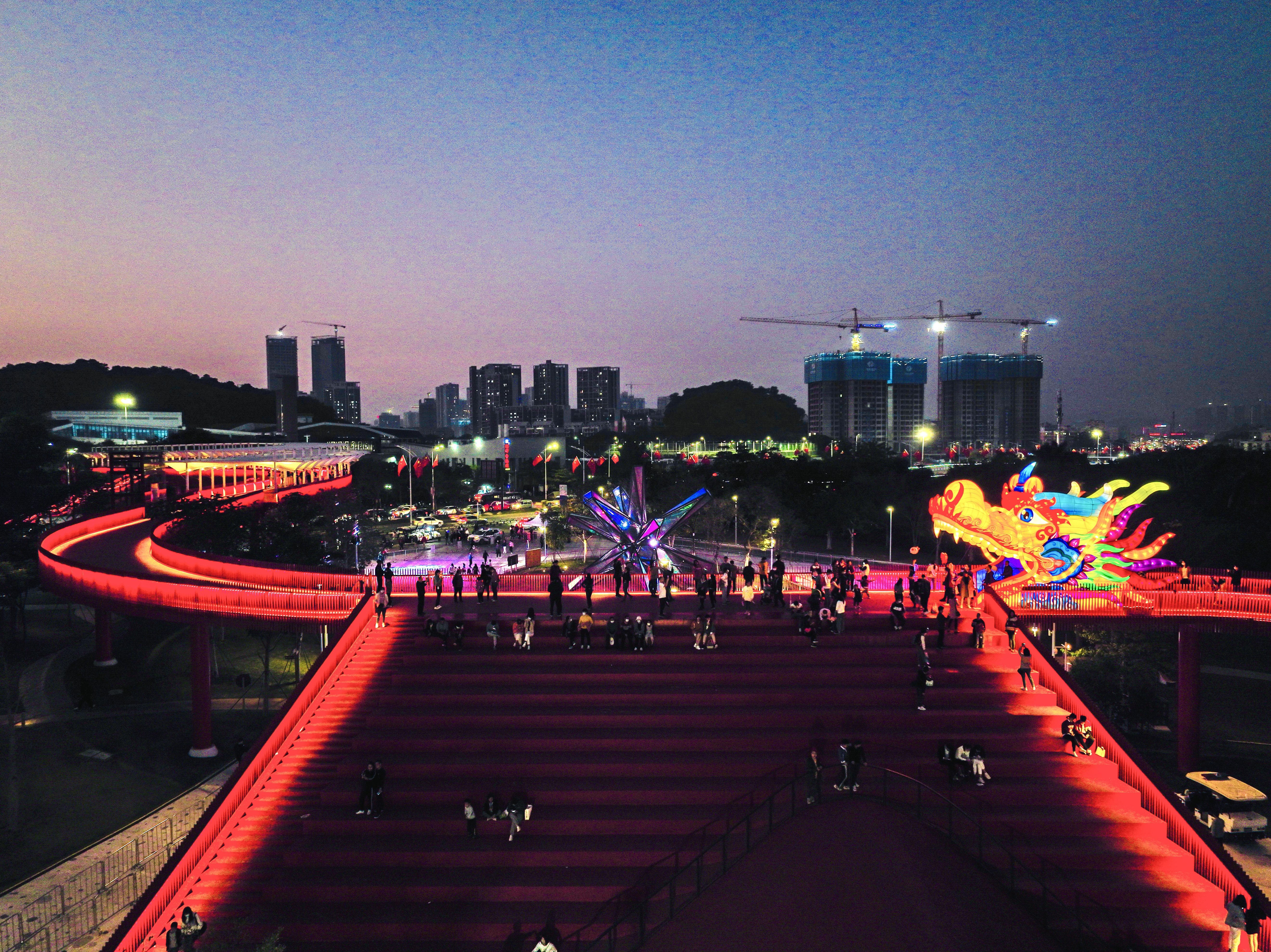 2022年1月1日上午,「向光而行·明耀未來」2022年深圳市光明區首屆生態文化旅遊節由盛大的「歡樂彩虹跑」活動拉開帷幕,為廣大市民送上了一波節日福利:虹橋「化龍」亮燈儀式,以藝術之光點亮科學之城,為廣大遊客送上新年紅龍祥瑞祝福。