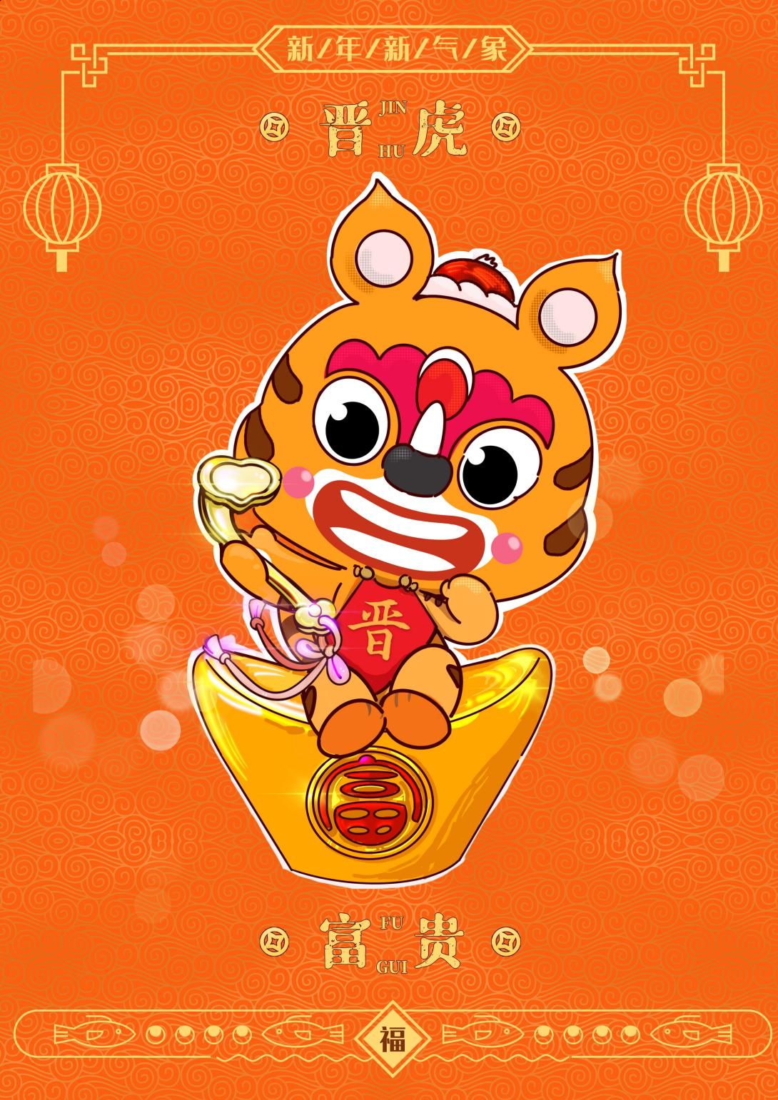 據了解,晉虎形象的創作將晉字的筆畫結構與虎的面部特徵做了創意融合,利用「晉」字書寫筆畫的對稱結構,自上而下,與小虎面部眉毛、眼睛、鼻子、嘴巴的構成統一起來,形成專屬於山西的鮮明醒目的晉虎形象。晉虎IP形象,既有品牌名稱「晉」字的辨識度,又有山西民俗布老虎文化的表現特徵。