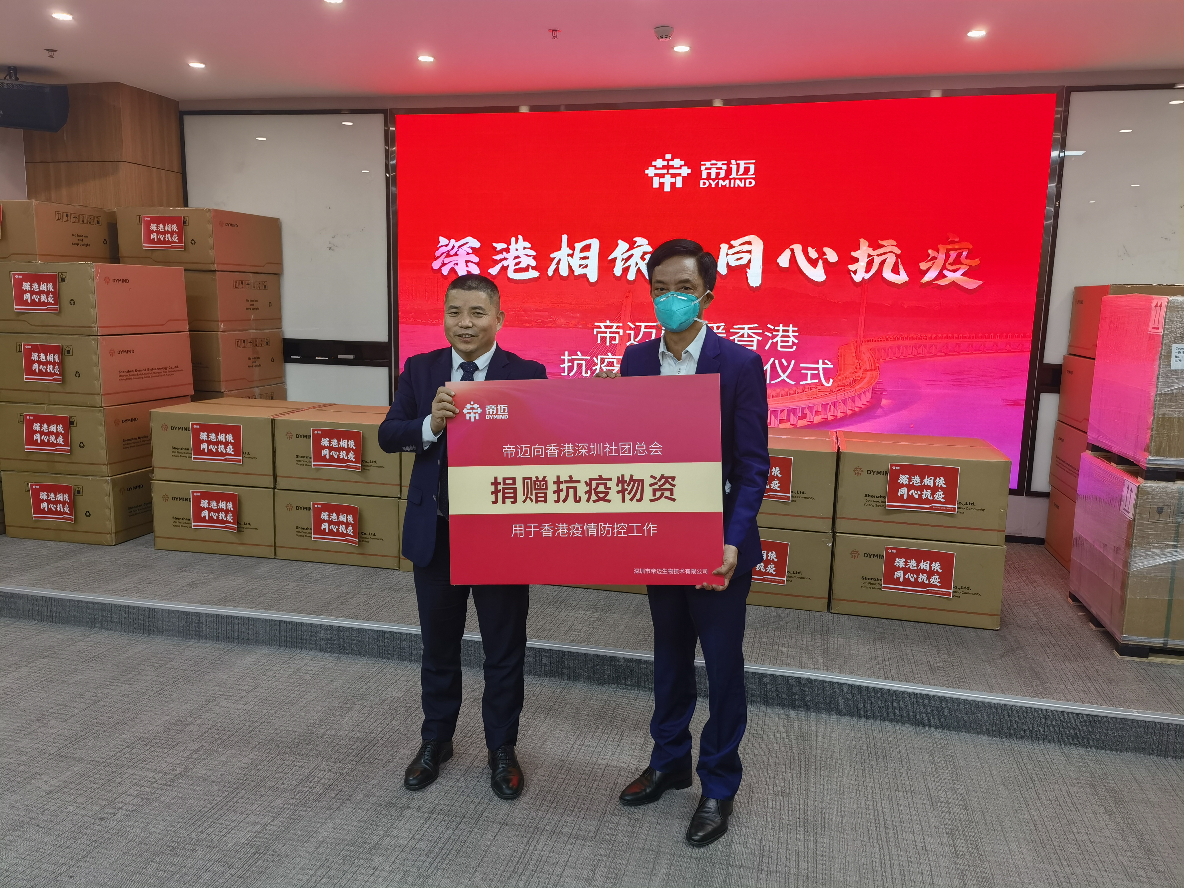 帝邁總裁翟留偉表示,香港和深圳山水相依,香港疫情牽動著全國人民的心,「豈曰無衣,與子同袍」,帝邁作為中國醫療器械行業的一份子,理應肩負起社會責任,動員帝邁一切可以動員的力量和資源支援香港,緊急調動排單生產,為的就是把香港同胞最需要的抗疫物資盡快送到他們的手中。