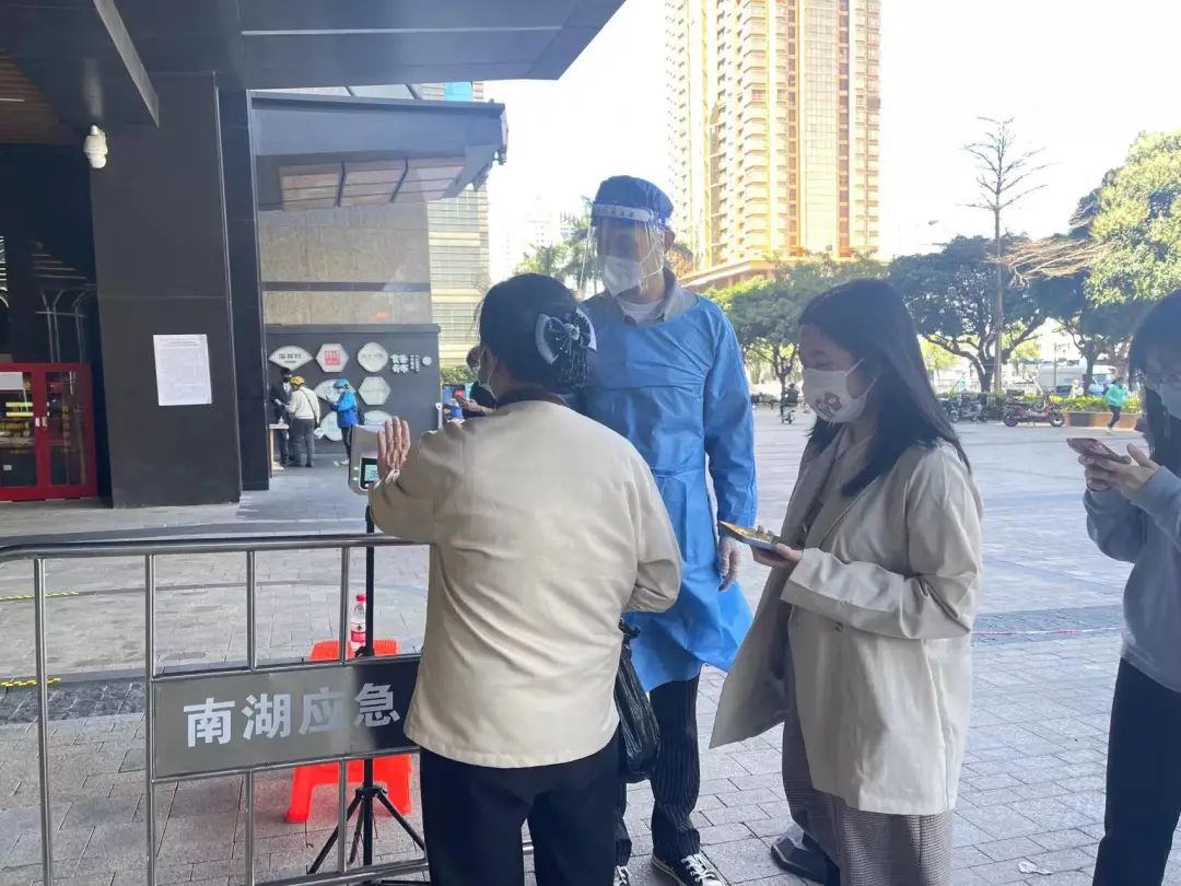 另一位香港青年志願者許紫妍,則用自己甜美的笑容和貼心的服務緩解市民的焦慮情緒。她說:「最近看到了很多內地援港的新聞,我真的非常感動。深圳現在也受到疫情影響,希望能夠儘自己的一點綿薄之力。」羅湖區南湖街道新南社區黨委書記張宇發自內心地感激港澳志願者們:「我們都是一家人,危難時刻,我們在一起!」