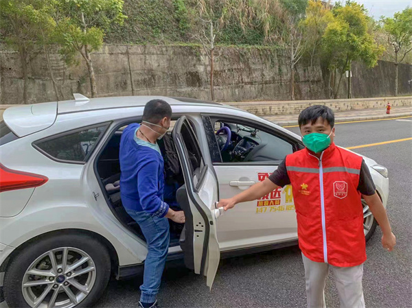 3月16日一大早,來自龍崗的退役軍人紅星志願者周雷在「勇當先鋒」志願者車隊群里看到附近有一個醫護人員打不到的士,又急著趕往目的地開展當日防疫任務。周雷立刻前往定位所在地,火速地將醫護人員送到羅湖區蓮塘街道工作點。「關鍵時刻,我就要像戰士一樣沖。別人需要我,我就馬上做到!」連續多日支援一線防疫工作的周雷說道。這幾天,全市公交地鐵停運、私家車憑證出行,龍崗區30餘名退役軍人紅星志願者用自己的私家車輛組建志願者車隊,為抗疫人員提供免費接送服務。
