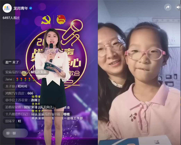 直播中還設置了場外互動連線環節,現場連線到的是一戶龍崗家庭,媽媽和女兒在手機屏幕前很是開心,她們表示此次雲歌會活動豐富了一家人的居家文化生活,同時感謝正在抗疫一線的工作者和志願者們,並呼籲在特殊時期,積極配合防疫是每一位市民應有的責任和義務,大家要合理安排居家生活,趁着這段「慢時光」,多與家人互動,享受家庭的幸福感,也期待疫情早日消散。