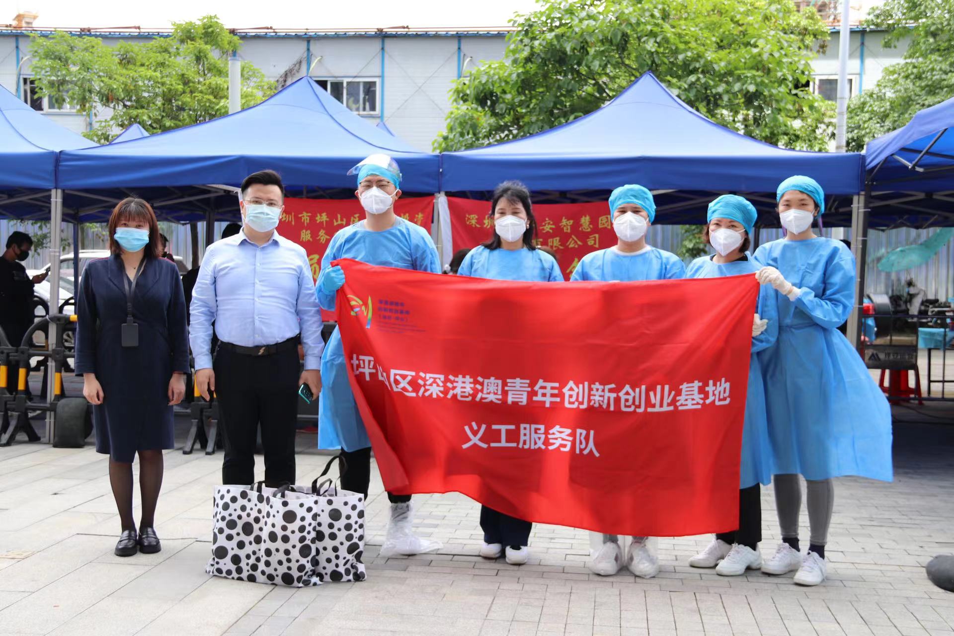 據了解,今年疫情發生以來,坪山區深港澳青年創新創業基地積極響應號召,組建成立義工服務隊,多次組織入駐基地的企業員工支援坪山區核酸檢測點志願服務。此次志願服務吸引了該基地企業根之然生物科技有限公司員工以及數名香港青年踴躍報名參與。